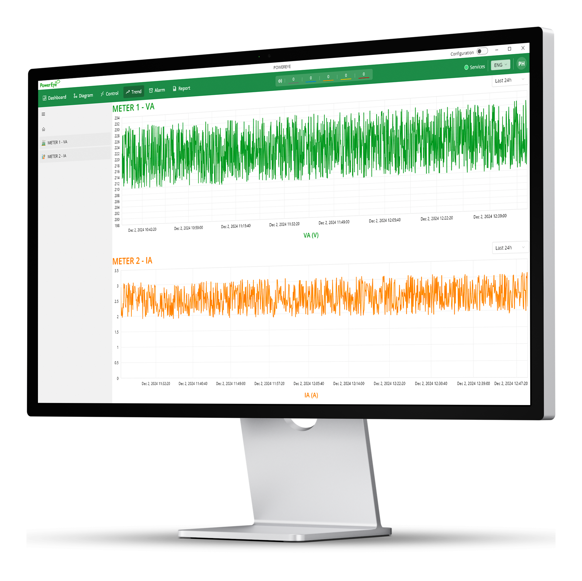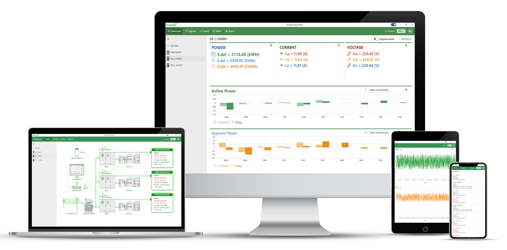 Mô-đun Điều khiển của PowerEye cung cấp khả năng hiển thị dựa trên sơ đồ, phân tích so sánh và cấu trúc phân cấp.