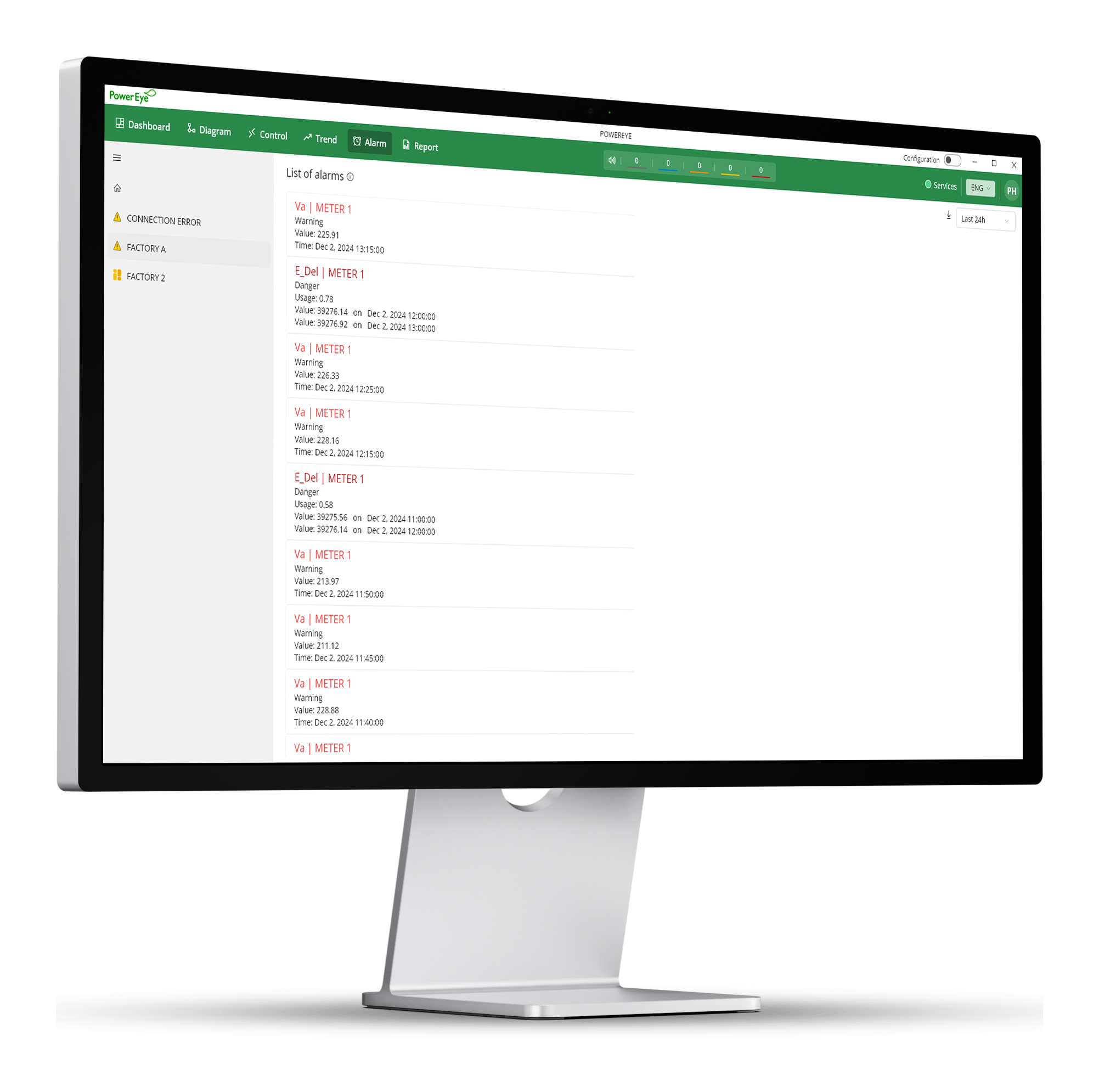 Tính năng Cảnh Báo của PowerEye giúp bạn không bỏ lỡ bất kỳ sự kiện quan trọng nào. Từ kết nối thiết bị, ngưỡng an toàn đến theo dõi mức tiêu thụ, hệ thống cảnh báo mang đến thông tin kịp thời để giữ cho hệ thống an toàn và hiệu quả.