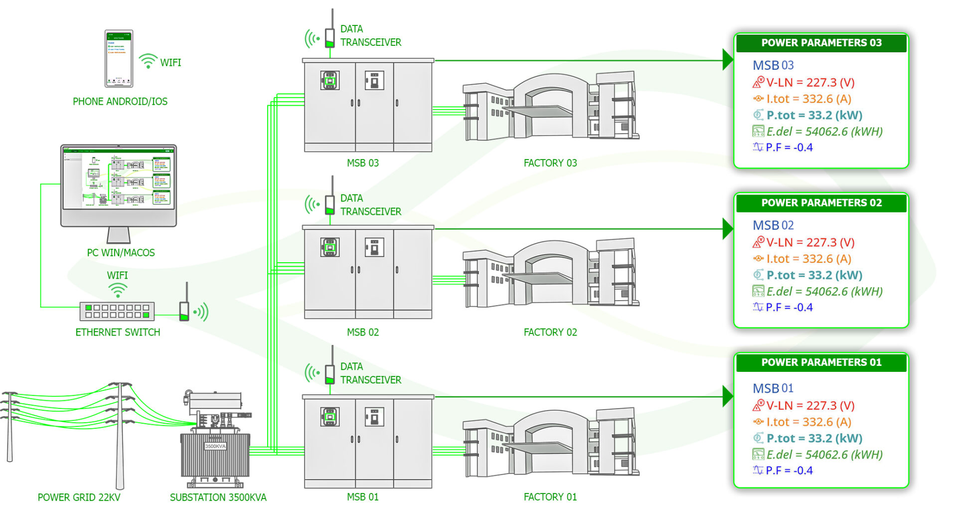 - Factories & Manufacturing Plants: Monitor machinery, track energy consumption, optimize production efficiency, detecting energy waste, and preventing unexpected failures.